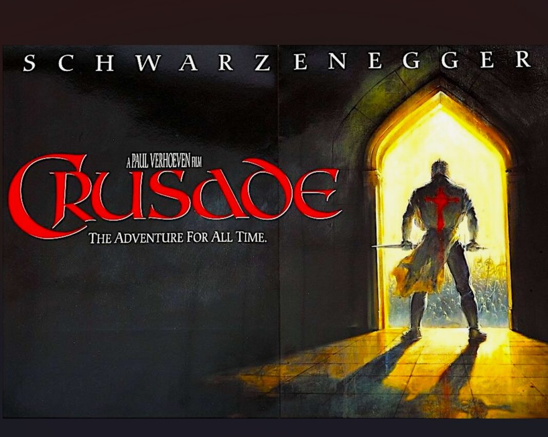 This is the Schwarzenegger movie that came closest to happening only to have the rug pulled. They had a script by an Oscar-nominated screenwriter, massive budget, prestigious cast, locations in Spain and Morocco, crew, sets, storyboards, props, press materials, and then—poof. What happened to what is regarded as one of the best unproduced projects of all time? In 1993, preproduction was proceeding on pace for 1994’s Crusade, starring Arnold and directed by Paul Verhoeven, who had helmed Arnold in the 1990 blockbuster Total Recall and was riding high on the even bigger hit, 1992’s Basic Instinct. It was written by Walon Green, who penned The Wild Bunch and other classics.