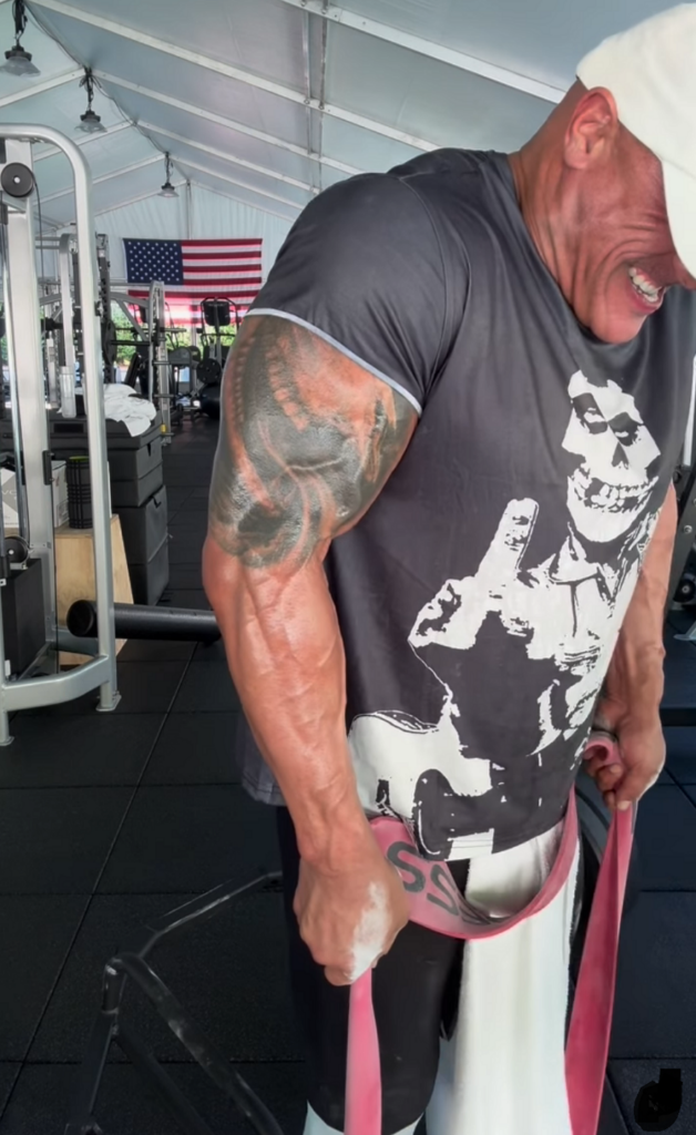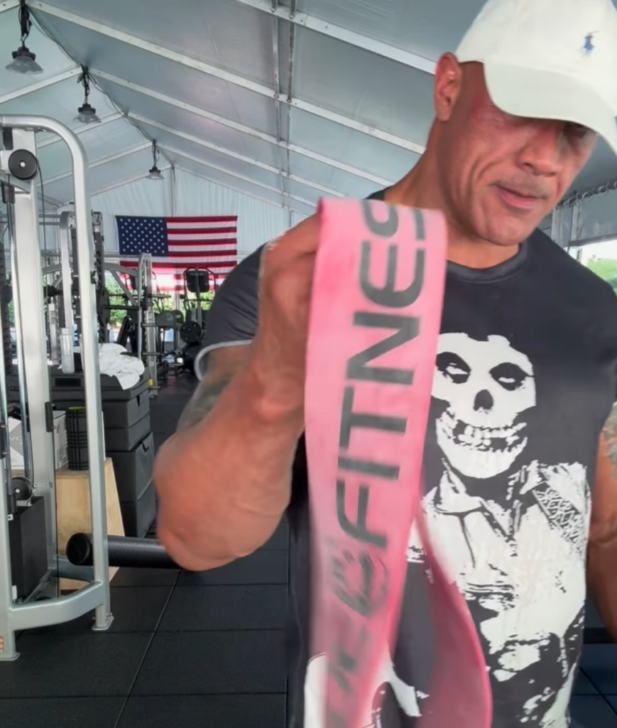 “Put together a new superset for traps that I’m loving. The burn and activation is deep, especially using a heavy resistance band,” The Rock said.